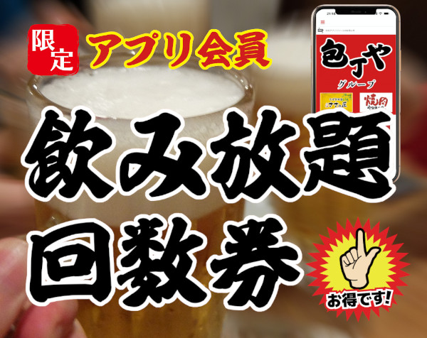 早速、包丁やグループアプリ&アプリ会員限定の飲み放題回数券についてご説明させて頂きます。